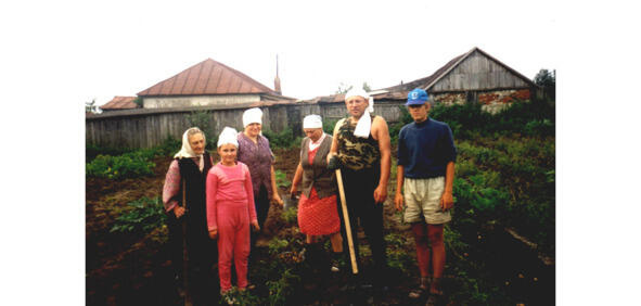 Копаем картошку. Мама, Оля, Надя, Лида, Саша и Дима. 1999 год