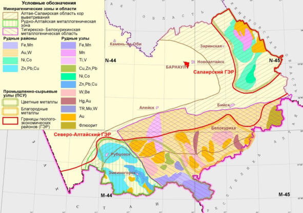 Рис. 1.1. Карта минерагенического районирования Алтайского края.