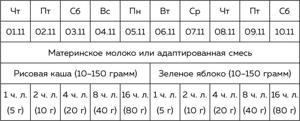 Судя по информации в этой таблице, ребенок должен за пять дней научиться съедать 80 граммов еды. Но вся правда в том, что большинство детей не съедает таких объемов, и это абсолютно нормально! И, к сожалению, родители такие таблицы принимают как обязательное руководство к действию.