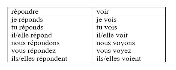 Неправильные глаголы (verbes irréguliers): aller, écrire, faire, répondre, voir.