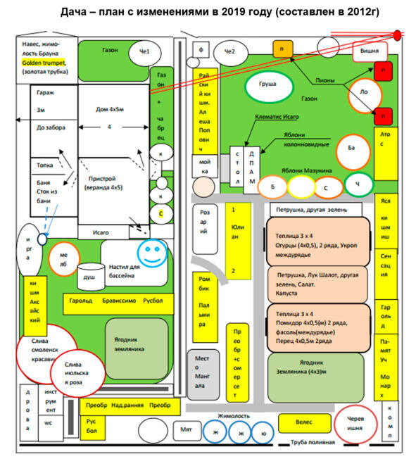 После освоения участка с 1991 года у меня получилась планировка дачи, которая представляется Вашему вниманию на рисунке ниже.