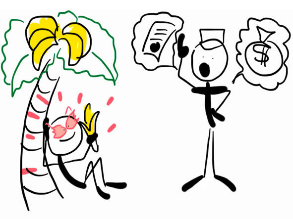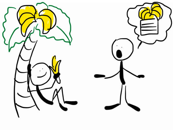 Знаешь такую притчу? задал вопрос Первый. «Лежал под пальмой человек и ел бананы. Подошёл к нему другой человек и говорит: «Почему ты лежишь, а не работаешь. Собрал бы бананы и продал»
