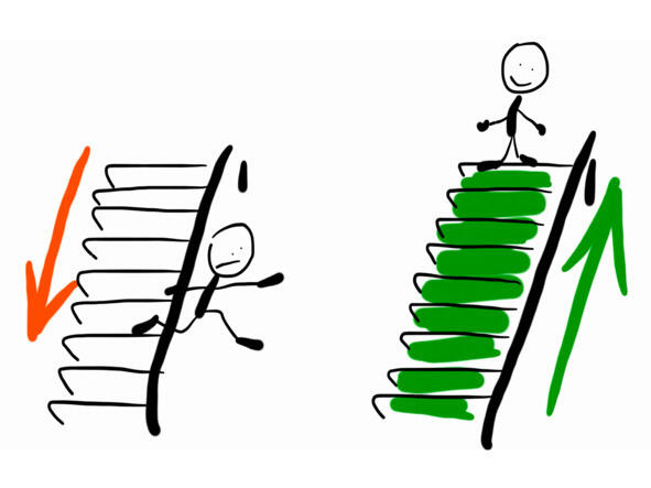 Но есть и эскалатор, который движется вверх. Если ты оказался на нём, то даже, стоя на месте, ты всё равно поднимаешься вверх.
