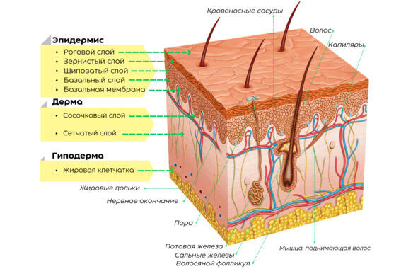 Как я написала ранее краситель окрашивает только эпидермис. Условно, этот слой можно разделить всего на 2 части: