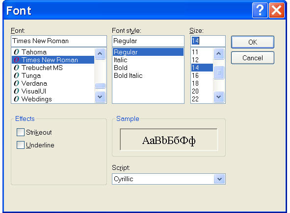 Рис. 2.5. В панели Font устанавливаем шрифт.