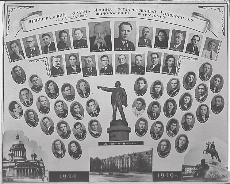 Научная жизнь психологов университета была довольно интенсивной и непростой. В сталинские времена многим ученым приходилось участвовать в идеологических кампаниях, направленных против отдельных научных теорий и целых наук. Генетика, кибернетика, языкознание, физика, психология часто оказывались под огнем идеологической критики. Тяжело даже читать стенограммы тех «дискуссий». Но было и другое. Проводились научные мероприятия с докладами, посвященные памятным датам и значимым общественным событиям, обсуждения новых научных книг или рукописей, готовящихся к печати монографий. Так, 25 марта 1948 г. на открытом заседании кафедры психологии ЛГУ состоялось обсуждение «Очерков истории русской психологии XVIIIXIX веков» Б. Г. Ананьева, опубликованных в 1947 г. Книга получила одобрение и признание среди профессионалов. Однако на нее был и отрицательный отклик неизвестного в научных кругах автора, некоего Чернакова. Его рецензия была опубликована во влиятельном партийном журнале «Большевик». В ситуации непрерывных политических репрессий того времени такая рецензия вполне могла повлечь за собой плохие последствия для Ананьева, но, к счастью, обошлось.