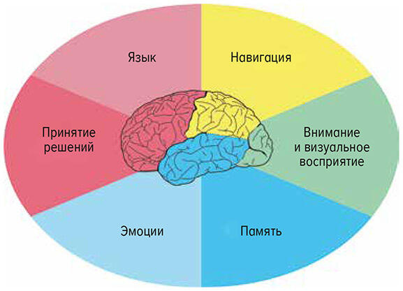 Шесть составляющих опытаРазные процессы, о которых говорилось в предыдущих пунктах, обычно протекают в специальных участках мозга (рис. 1.4).