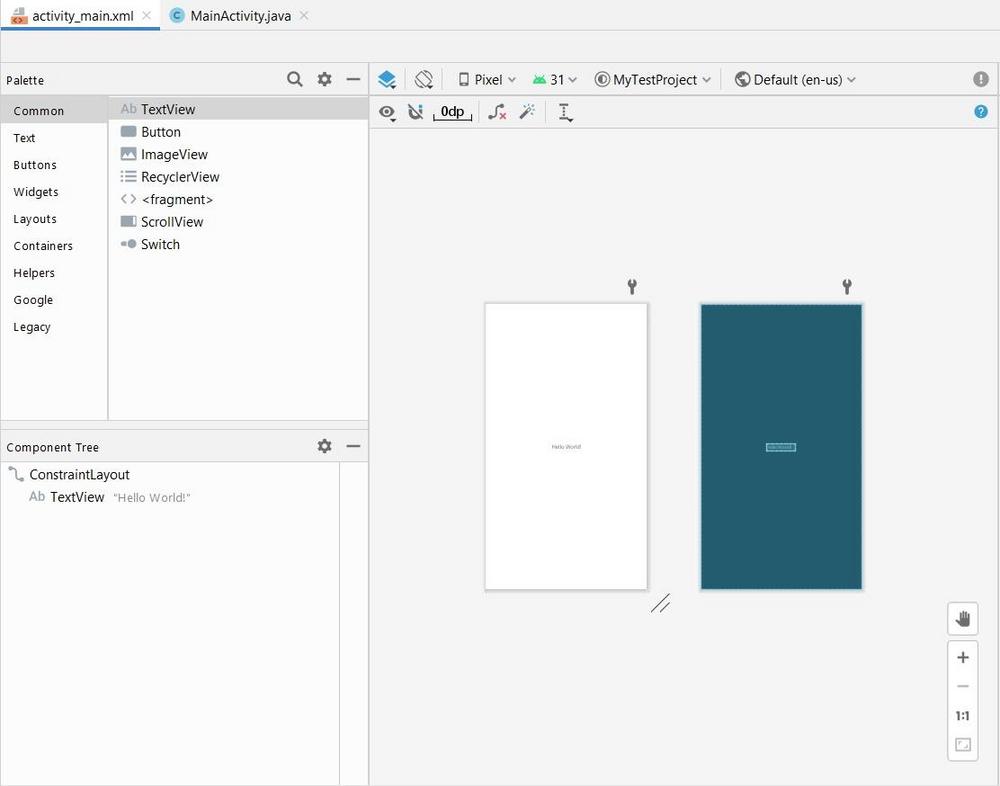 Итак, приложение создано. Но, если мы запустим его на устройстве, не важно виртуальном или физическом, мы ничего не увидим, кроме белого чистого листа. Это потому, что мы ещё ничего не создали и не добавили в приложение.