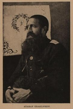 Войсковой старшина И.П. Красильников Есаул Калмыков(Х) и есаул Бочкарёв(стрелка), 1919 г.