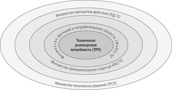 При разработке пионерной технической системы (ТС), совершенствовании аналога (прототипа) ТС или создании ТС нового поколения необходимо сформированную технически реализуемую потребность человека сначала конкретизировать во множестве функций и свойств ТС.