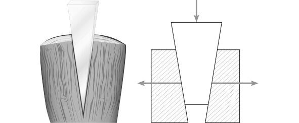 Рисунок 22. Плоский клин. Изменение направления движения и величины передаваемого усилия плоским клином