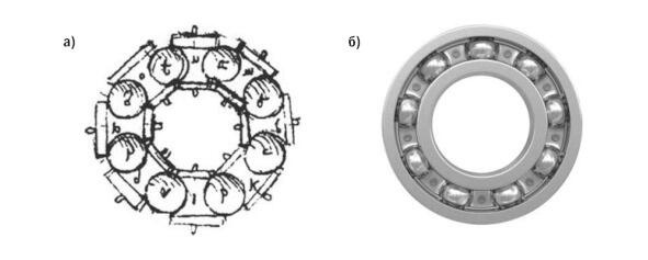 Рисунок 33. Шариковый подшипник: а предложенный Леонардо да Винчи; б современный
