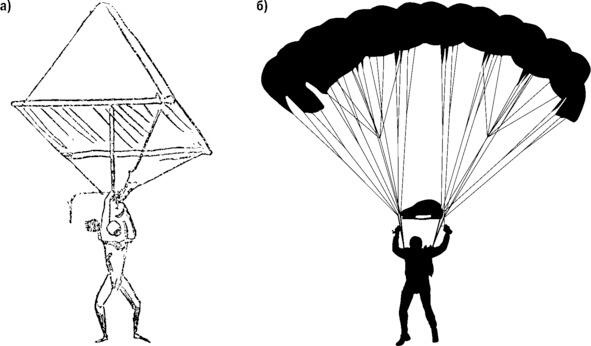 Рисунок 34. Парашют: а предложенный Леонардо да Винчи; б современный