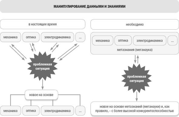 В целом методология создания метазнаний (меганауки) и конвергенции знаний пока еще недостаточно разработана, а сам этот процесс создания (с учетом постоянного появления новых знаний) бесконечен. Оригинальный подход в объединении и использовании знаний о функциональных структурах и принципах действия ТС разных отраслей экономики, основанных на знаниях обо всех разделах физики, химии, биологии, экономики, разрабатывается под моим руководством. Результаты представлены в главе 6.