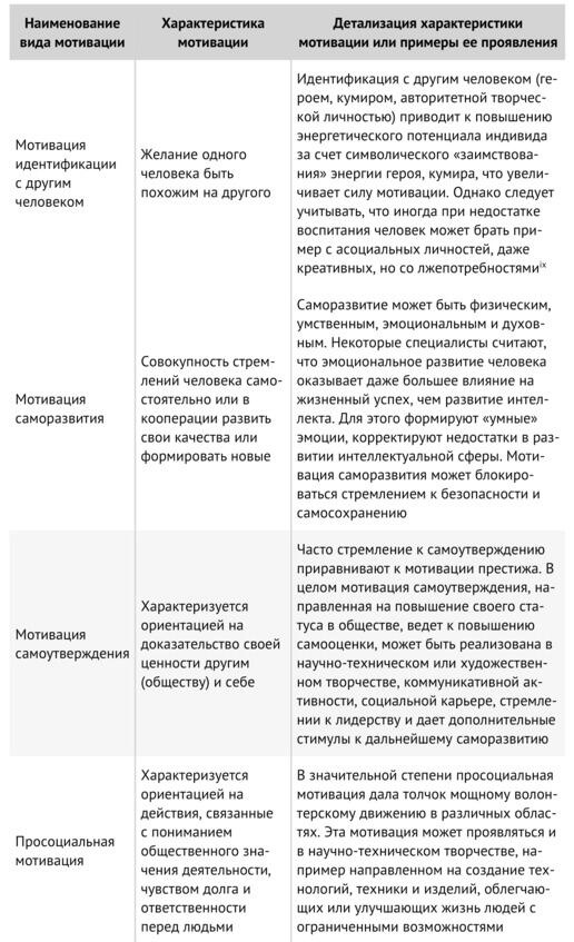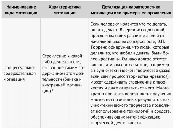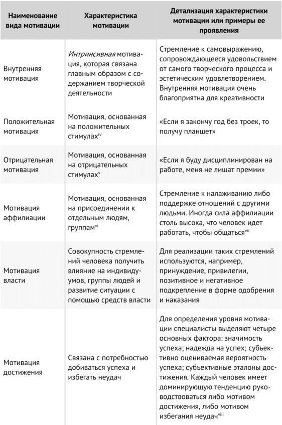 Таблица 8. Виды мотивации к творчеству (продолжение)