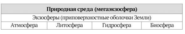 Природная среда мегаэкзосфера состоит из четырех экзосфер приповерхностных оболочек Земли (таблица 2, рис. 9)8.