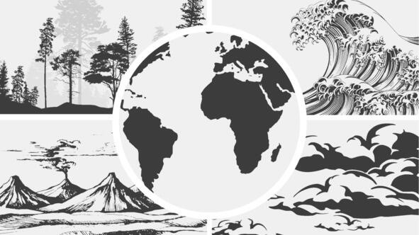 Рисунок 9. Экзосферы (приповерхностные оболочки Земли): атмосфера, литосфера, гидросфера и биосфера