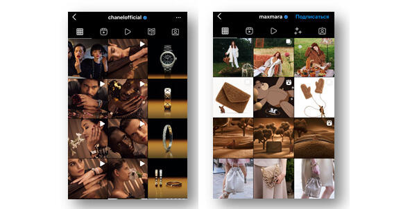 Например, бренд Chanel использует столбцы, которые создают визуальный порядок, а бренд Maxmara строки, объединенные одной идеей