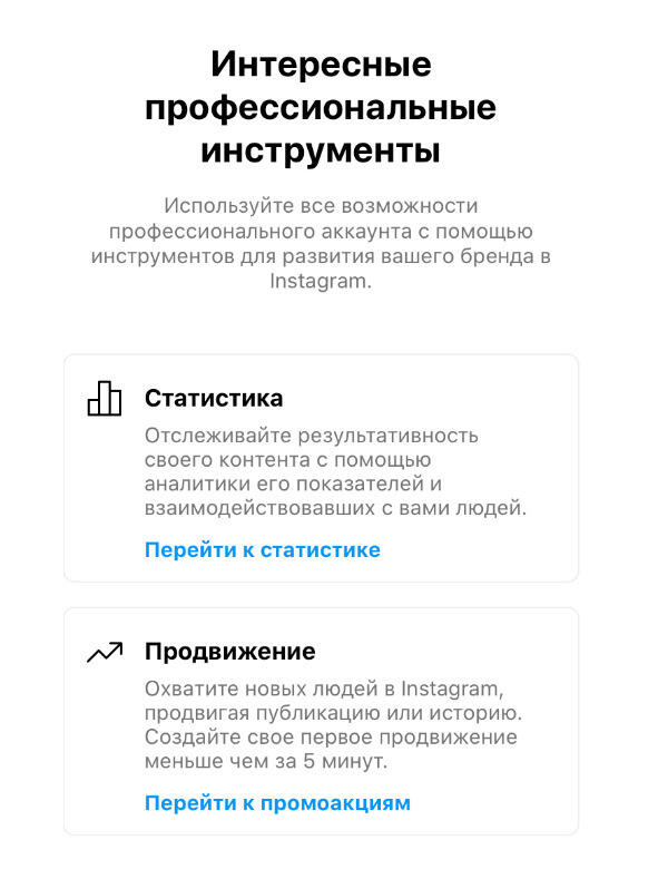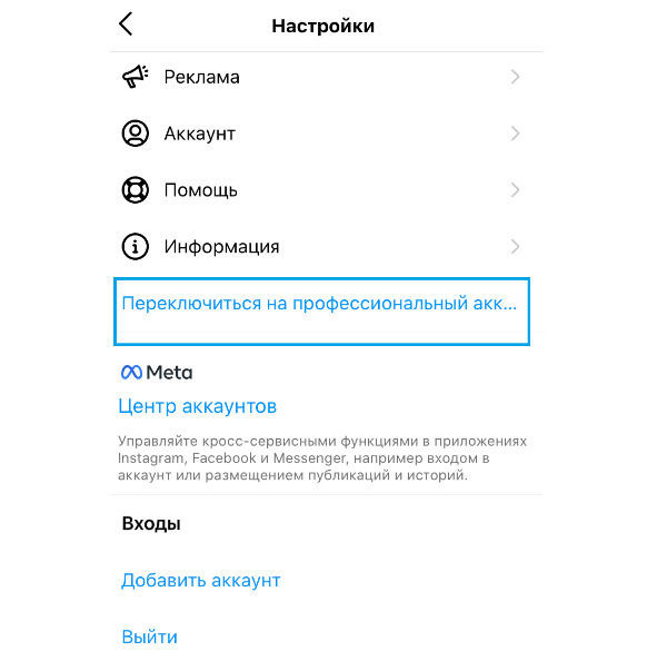 На главной странице своего профиля открываем Дополнительные инструменты > Настройки > Переключиться на профессиональный аккаунт.