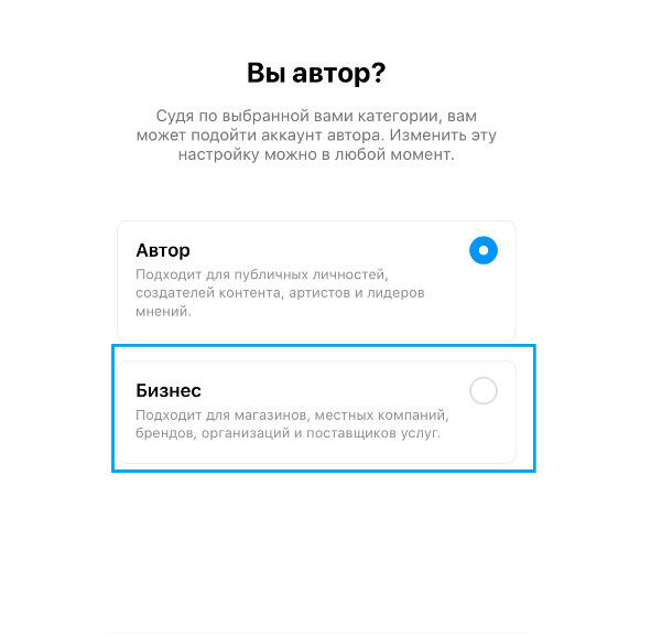 Система попросит уточнить сферу деятельности (нишу бизнеса) и предложит варианты ведения бизнес-профиля. Мы с вами выбираем Бизнес и начинаем рассматривать преимущества, которые становятся нам доступны.