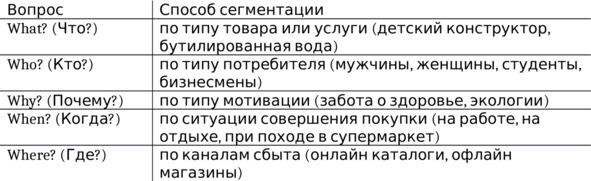 Географический критерий дает понимание масштаба, демографический покупательскую активность, экономический критерий указывает на платежеспособность, а психологический обозначает психотипы людей.