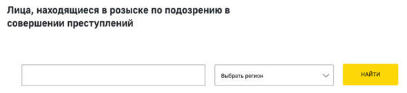 Рис. 7. Интерфейс сервиса «Лица, находящиеся в розыске по подозрению в совершении преступлений»