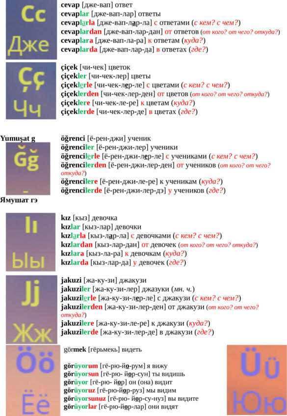 öğrenci [ёренджи] ученик (это не «ё», это нечто среднее между «ё» и «о»)