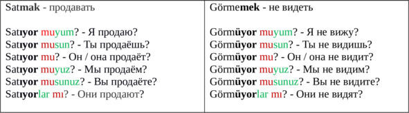 1. Ты (sen) завтра (yarın) на пикник (pikniğe) не собираешься (gitmiyor musun)?