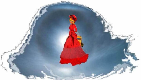 Из утренней дымки по направлению к нам двигалась женщина в красном платье с золотистыми волосами, забранными в шляпку. В руках у нее было деревянное ведро, наполненное водой, на поверхности которой плавал ковшик. Она не шла, а как бы скользила над травой, не оставляя следов. Поравнявшись с нами, женщина, а может девушка волшебница подхватила ведро и начала удаляться от нас. Она вошла в прозрачную сферу и исчезла, потом и полупрозрачный шар растворился в воздухе». (С. Конанцева. Гиперборейский паразит)