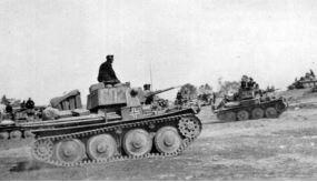 Танки PzKpfw38(t) 7-й танковой дивизии на марше.
