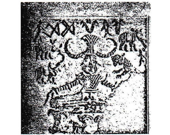 Дополнением этих устных и письменных преданий являются и глиняные таблички с оттисками, найденными в раскопках долины Инда Мохенден Даро и Хараппы /более пятидесятилетней давности/ с рельефными фигурами в позе «Лотоса», которая, по предположению, представляет собой Бога Шиву в состоянии медитации.
