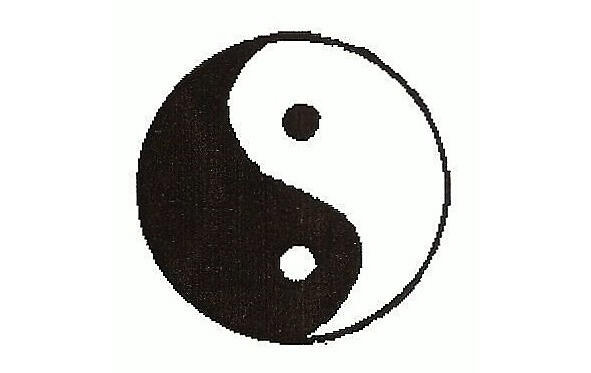 Символически это представлено кругом, означающим Абсолют бесконечности во времени и пространстве. Слева черная сторона обелиска перевернутой запятой, представляет втягивание воздуха в материю это ЙИН. Его атрибуты: суть, мрак, холод, центростремительная сила. Это сторона Луны. Справа, белая поверхность такой же величины и формы, только в обратном положении это ЙАНГ, сторона света, тепла, Солнца: она означает центростремительную, положительную силу. В центрах их ЙИНА, в самой широкой его части, находится маленькая белая точка, а в центре ЙАНГА черная, что означает, что во Вселенной не существует ничего абсолютно положительного или абсолютно отрицательного.