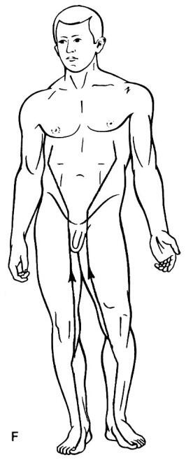 На выполнение отдельных массажных движений комплекса отводите примерно равные промежутки времени с тем, чтобы обеспечить равномерность проработки организма. Впоследствии, по мере развития восприятия своего тела, можно выполнять движения до возникновения описанных ниже специфических ощущений. Если все же такое ощущение никак не возникает, смело переходите к следующему движению и помните, что запуск целостного механизма саморегуляции важнее лечения отдельно взятого участка тела.