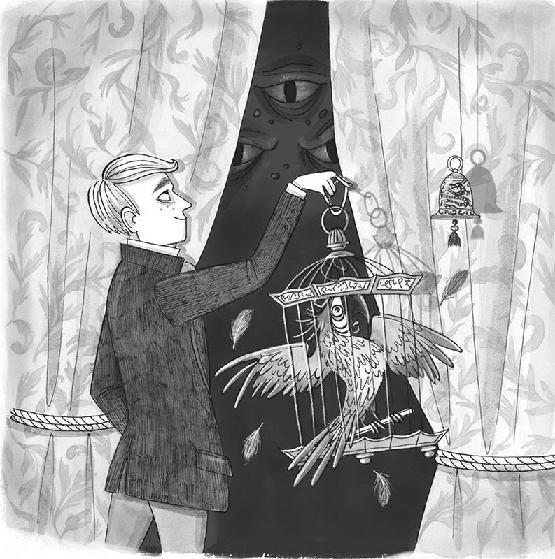 Поставив клетку на пол, Эбенизер направился прямиком к портьерам и чуть помедлил, прежде чем отдёрнуть их в сторону.