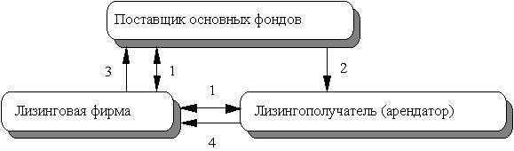 2 поставка основных средств арендатору; 3 лизинговая фирма оплачивает стоимость основных фондов поставщику; 4 арендные платежи арендатора лизинговой фирме