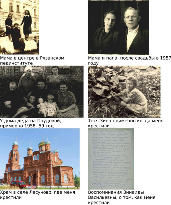 Картину крещения восстановила крестная, сестра мамы, тетя Зина, Зинаида Васильевна Галкина (Чебакова), в разговоре по телефону пару лет назад, и даже написала об этом событии в воспоминаниях. Эти слова ниже и привожу, мои добавления в скобках.
