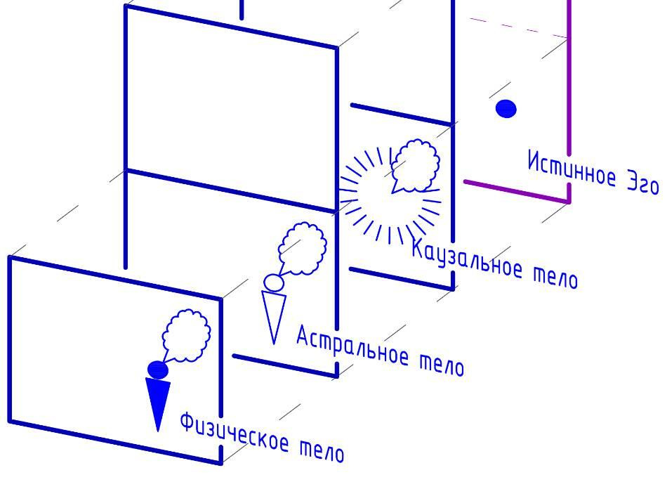 Человек состоит из нескольких тел. Физическое, астральное, каузальное и Истинное Эго (Истинное Я).