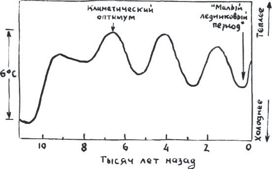 Во время климатического оптимума температура была приблизительно на 2 °C выше современной. А около 300 лет назад во время, так называемого «малого ледникового периода», эта температура была ниже современной (по. Дж. Имбри и К. П. Имбри, 1988).