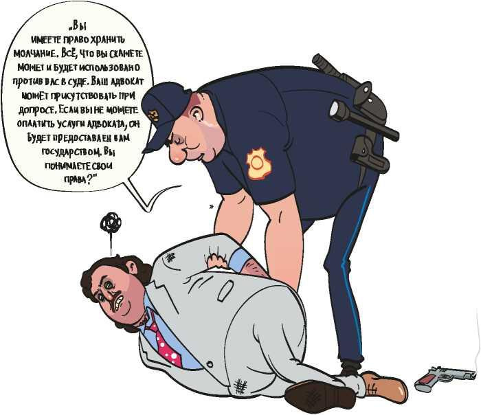 ТАИР Ну, не совсем точно вы цитируете, но похоже. Это называется «правилом Миранды». Кстати, формулировка, которую представители закона должны произнести при аресте, не во всех штатах Америки одинакова. Но чаще всего звучит так: «Вы имеете право хранить молчание. Всё, что вы скажете, может и будет использовано против вас в суде. Ваш адвокат может присутствовать при допросе. Если вы не можете оплатить услуги адвоката, он будет предоставлен вам государством. Вы понимаете свои права?» То есть, ещё и убедиться надо, что человек хорошо понял то, что ему сказали.