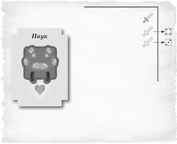 На стенах и потолке поблёскивают белые полотнища паутины. Справа Лоан замечает лестницу, ведущую в глубину шахты. Прямо перед ним, в конце коридора, слышится странный шум.