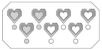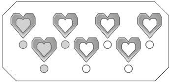 В приведённом выше примере Лоан потерял одно сердце. Маленький кружок внизу, под сердцем, оставь закрашенным так тебе будет легче запомнить, сколько всего очков жизни может получить Лоан.