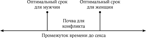 Возьмем самый простой пример: чем отличаются мужской и женский взгляды на то, сколько времени должно пройти после первого свидания до секса? Женщинам часто требуется больше времени, чтобы оценить достоинства партнера. Качества, которые идут в зачет партнерской ценности мужчины, внимательность, предполагаемое повышение статуса в будущем, надежность, здоровье, чувство юмора, существующие обязательства, семейные связи, хорошие гены не поддаются точной оценке с первого взгляда. Физическую привлекательность, важный компонент партнерской ценности для обоих полов, можно оценить за миллисекунды, но в мужчинах она ценится меньше, чем в женщинах. Более того, ошибки в выборе полового партнера женщинам обычно обходятся дороже, чем мужчинам. Женщины рискуют забеременеть от нежеланного партнера или в неподходящее время, с более высокой вероятностью заразиться инфекцией, передающейся половым путем, серьезно испортить репутацию. Да, двойные стандарты до сих пор существуют, даже в странах с самым высоким уровнем гендерного равенства, таких как Швеция или Норвегия. Основываясь исключительно на асимметричных рисках, женщины и мужчины разошлись в представлениях об оптимальном промежутке времени, которое должно пройти до секса (см. ниже).