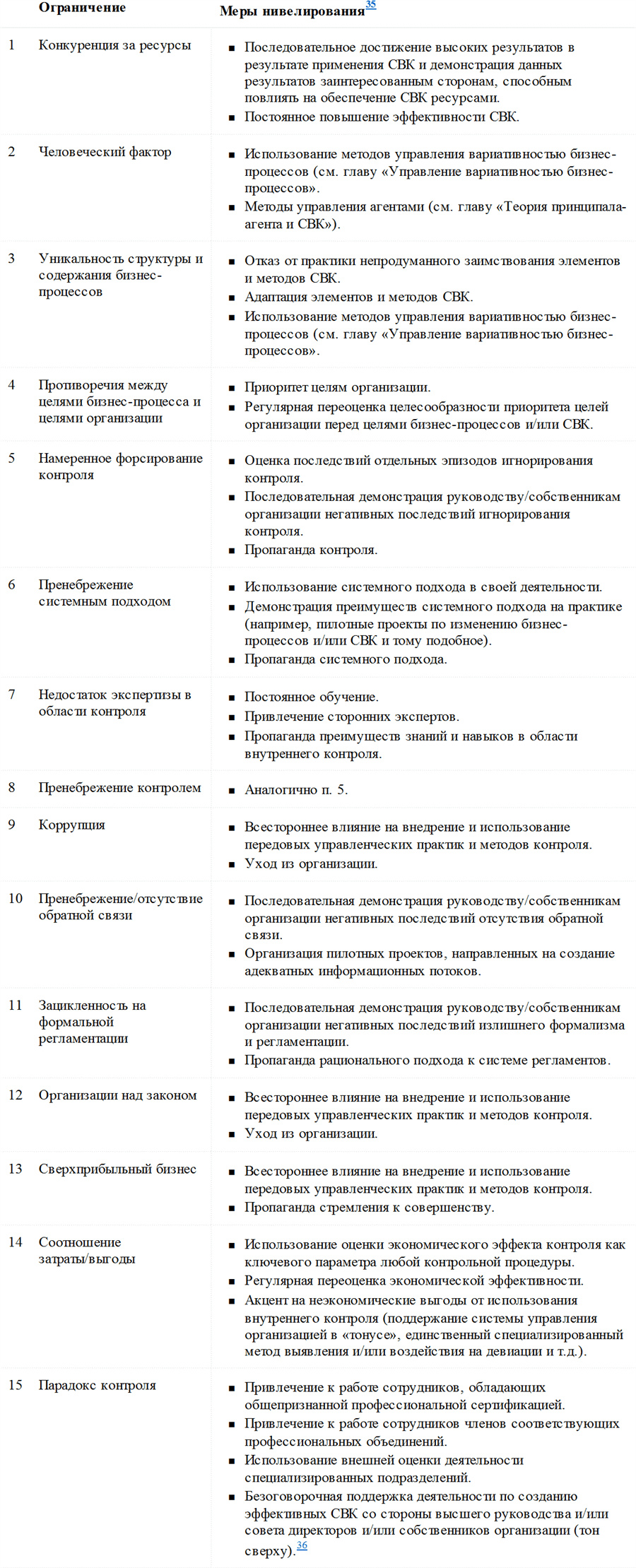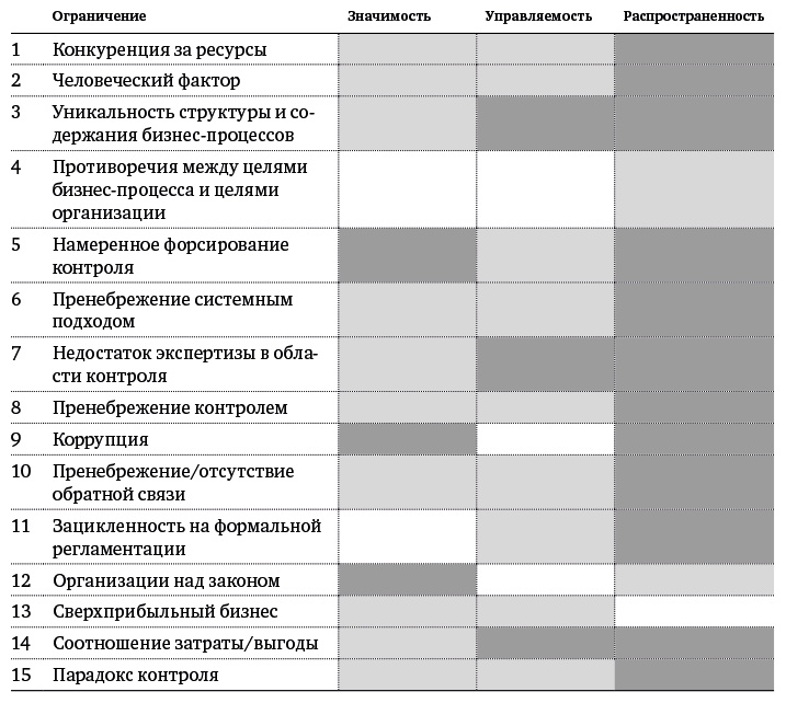 Используется следующая шкала значений высокий (темный цвет), умеренный (серый) и ограниченный (белый). Обратите внимание, что как минимум ограничения с оценками «высокий» и «умеренный» способны в одиночку серьезно нарушить эффективную работу СВК.