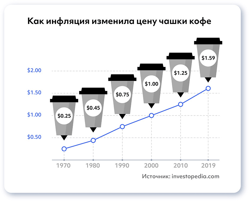 Всем понятно, что держать белорусские рубли (или российские рубли, или украинские гривны) под подушкой не лучшая идея из-за постоянного обесценивания валюты. Однако даже доллары и евро при таком способе хранения подвержены инфляции хоть и не такой большой. Например, если американец оставил «под подушкой» 1000 долларов в 1990-м году, в 2020-м он смог бы купить на них товаров и услуг в два раза меньше примерно столько, сколько в 1990-м приобрел бы на 500 долларов.