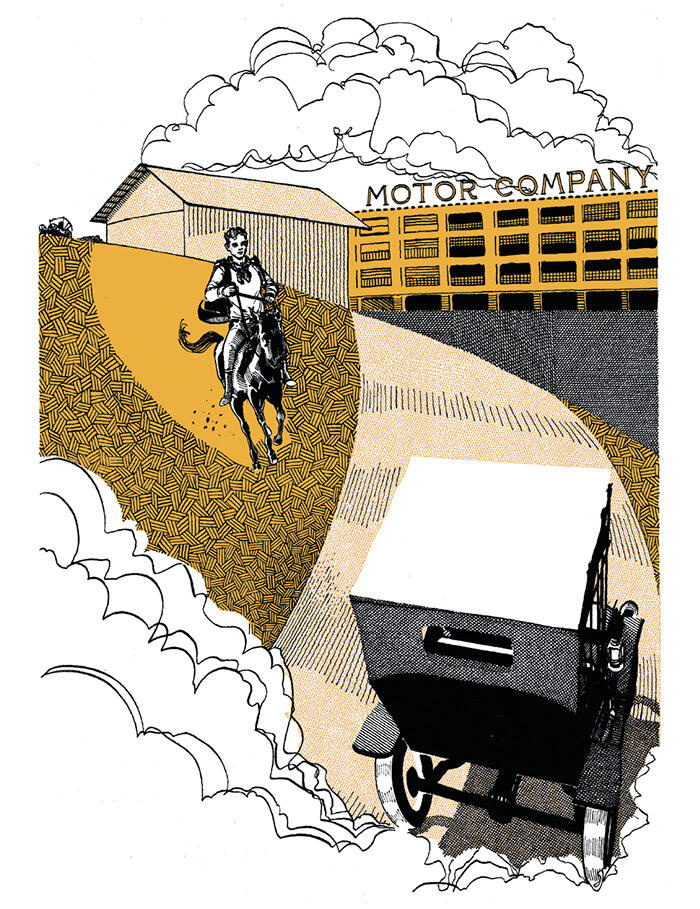 Отец ожидал, что Генри продолжит процветающее семейное дело. Но вместо этого шестнадцатилетний юноша без согласия отца ушел из дома, чтобы стать учеником механика на заводе в Детройте. Спустя десять лет у Генри уже был большой багаж знаний и навыков, так что он смог поступить на должность инженера-специалиста в компанию Edison, занимавшуюся электрическим освещением. В свободное от работы время молодой человек собирал газолиновые двигатели. Испытания одного из них Генри проводил прямо в своем доме. Рождественской ночью 1893 года он положил двигатель в раковину и вместе со своей женой Кларой, которая аккуратно наливала топливо, искал способ воспламенить горючее. Двигатель проработал меньше минуты, но Форд не сдался. Он был убежден, что метод проб и ошибок работает, и продолжал эксперименты. Наконец в 1896 году Генри создал первый прототип транспортного средства с мотором внутри. Он назвал его Ford Quadricycle («Форд Квадрицикл»). Хотя автомобиль был еще не совершенен, он показался очень многообещающим не только самому Генри, но и некоторым кредиторам. Форд уволился с работы и основал свою первую фирму: Detroit Automobile Company.