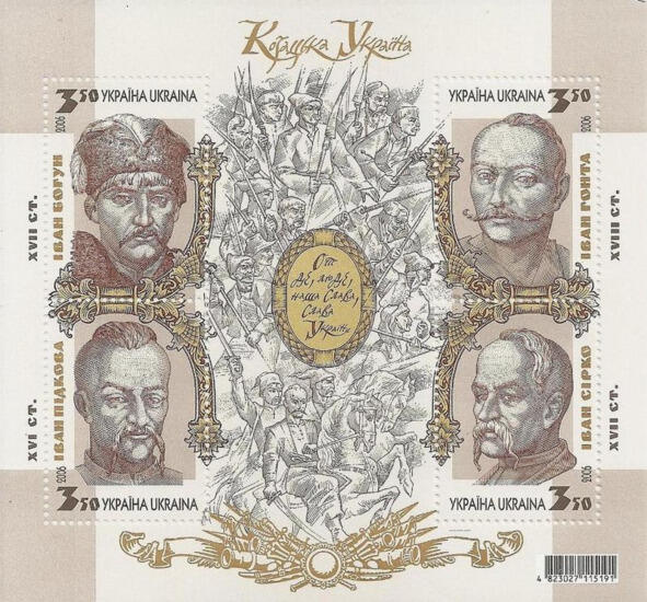 Почтовый блок «Казацкая Украина» с руководителем гайдамацкого восстания «Колиивщина» Иваном Гонтой
