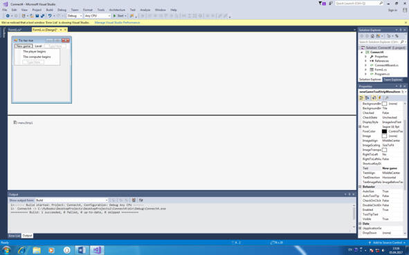 Для задания режимов игры, как и выше, с панели инструментов Toolbox переносим на форму элемент управления MenuStrip (рис. 12.7).