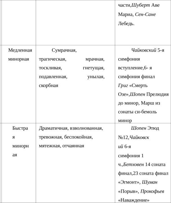 Связь параметров темпа и лада с характером музыки (по Петрушину В. И.)