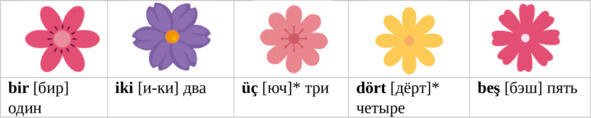 iki çi-çek [и-ки чи-чекь] (iki çi-çek) два цвет-ка