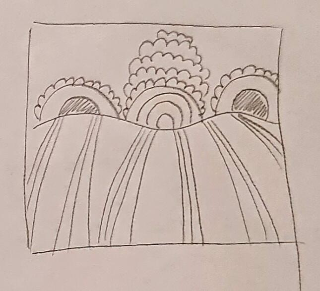 5. Нарисуйте прямоугольник и раскрасьте его мелками или толстыми карандашами. Сверху заштрихуйте мягким карандашом. Остриём ножа или чем-то острым нацарапайте узор